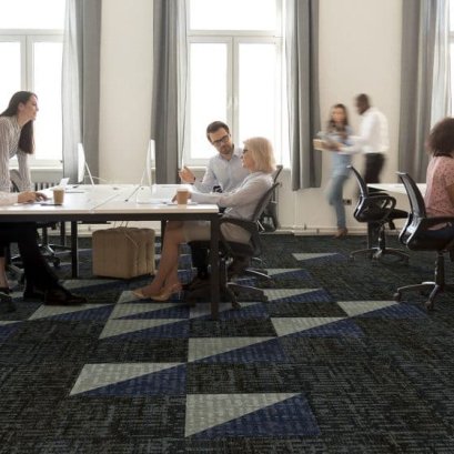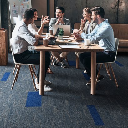 พรมแผ่น Zipline II ขนาด 50*50cm มีลวดลายและลายเส้นที่เป็นเอกลักษณ์ สามารถปูได้ทุกสถานที่ เช่น สำนักงาน ห้องทำงาน ห้องประชุม ดูแลรักษาง่าย ให้บริการติดตั้งโดยช่างปูพรมมืออาชีพ