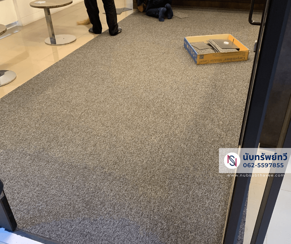 ผลงาน : พรมติดตั้งพรมแผ่น ปูพื้นทางเดินในสำนักงาน