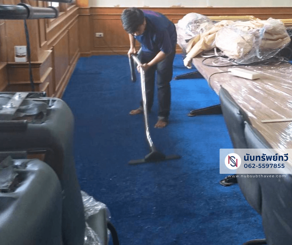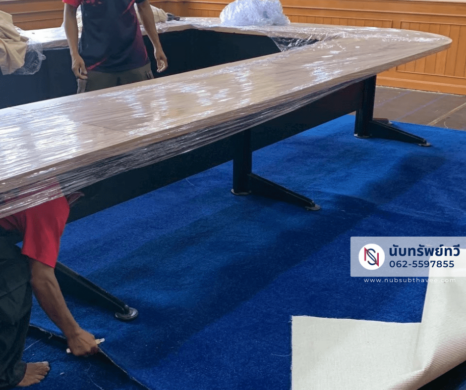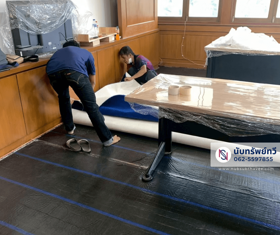 ติดตั้งพรมปูพื้นห้องประชุม ลดเสียงสะท้อน ด้วยพรมทอพร้อมยางรองพรม