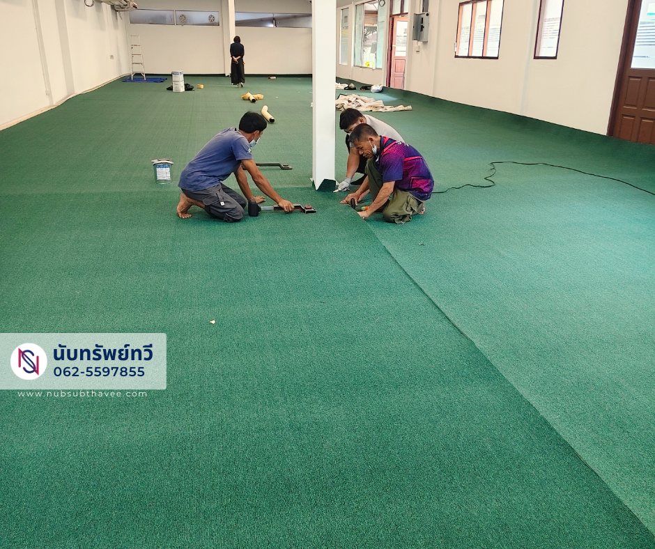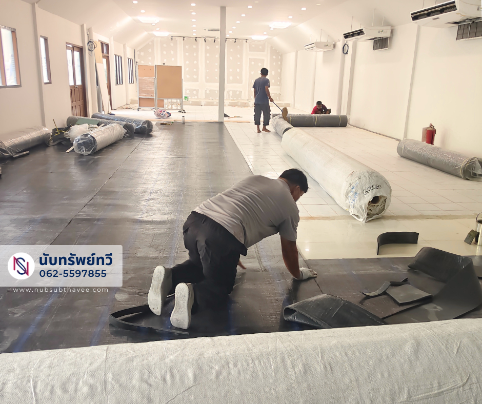 ติดตั้งพรมทอพร้อมยางรองพรม พรมปูพื้นห้องประชุม